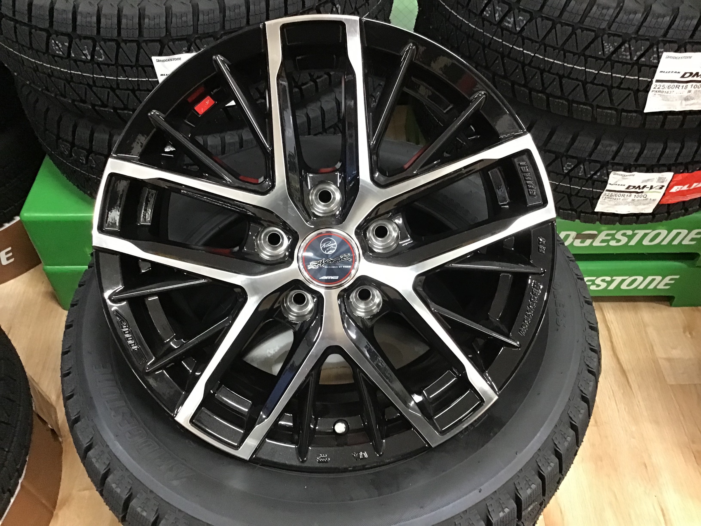 黒とシルバーのコントラストが目を引くスマックシリーズ 塩害軽減設計で冬にもオススメのホイールです。
