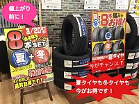 雪が多い今季ですが、来月にはタイヤ交換を考えている方もいらっしゃると思います。 もしそうなら早めの購入をオススメします! ご存知の方もいらっしゃると思いますが、4月からタイヤが値上がりしてしまいます。 なので! 少し早めにの購入がお得です! 冬タイヤを今年の冬に考えている方にもオス...