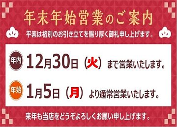 12月31日(水) ~1月4日(日)は休業日となりますが、WEBからタイヤ購入予約受付中