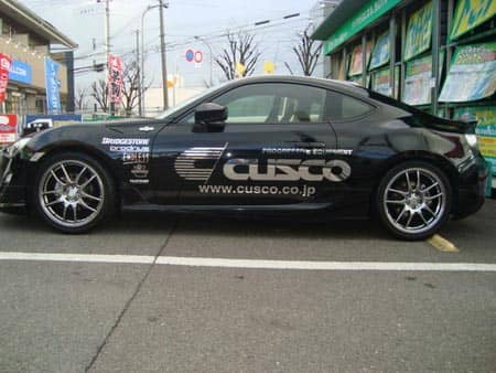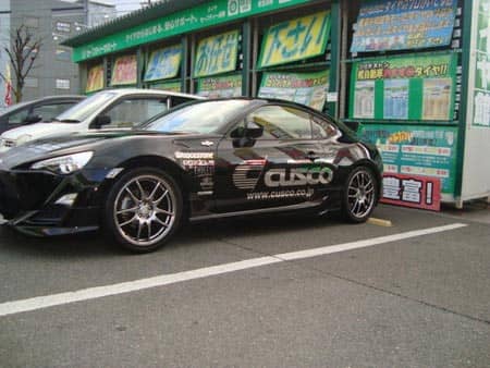 今日はなんと、車高調や補強パーツで有名な『CUSCO』のデモカーが店に