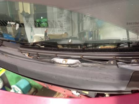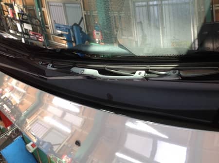 フロントガラスは曲面になっているので、均等に力が働くようにする金属部品が