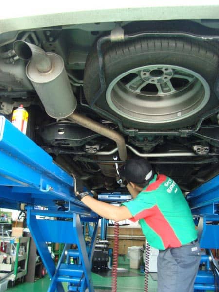 大半のお車のマフラーはボルト2本~4本ぐらいでの取り付けなので