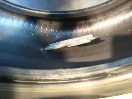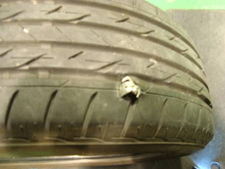 タイヤの中を確認してみると・・・なんと大きな鉄片が・・・