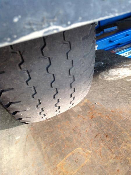 空気圧点検で御来店されたお客様…よく見ると後輪のタイヤがツルツルに(゜ロ゜)ギョェ