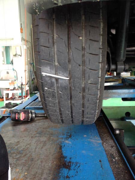 本日パンク点検で御来店されたお客様のタイヤに、なんと六角レンチが刺さっていました!