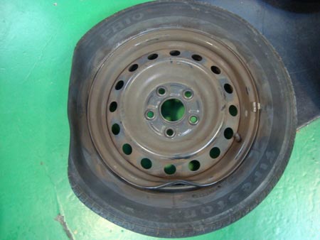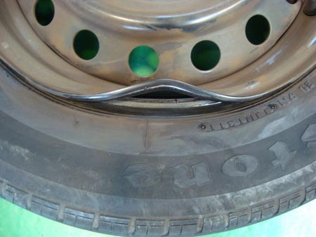 このような状態では、タイヤに空気圧をはることができませんので