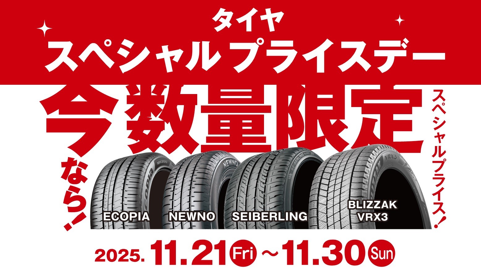 タイヤスペシャルプライスデーの案内はコチラ!