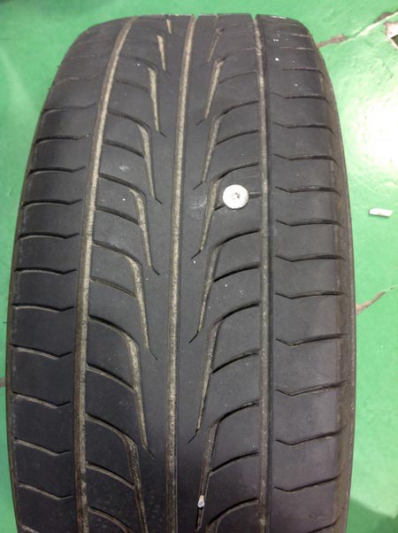 本日、パンク修理で来店されたお客様のタイヤなんですが、踏んでいたものが…