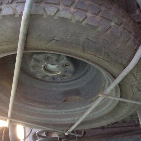 長い間スペアタイヤをご使用されていないと、空気も抜けていますし、タイヤもヒビ割れ