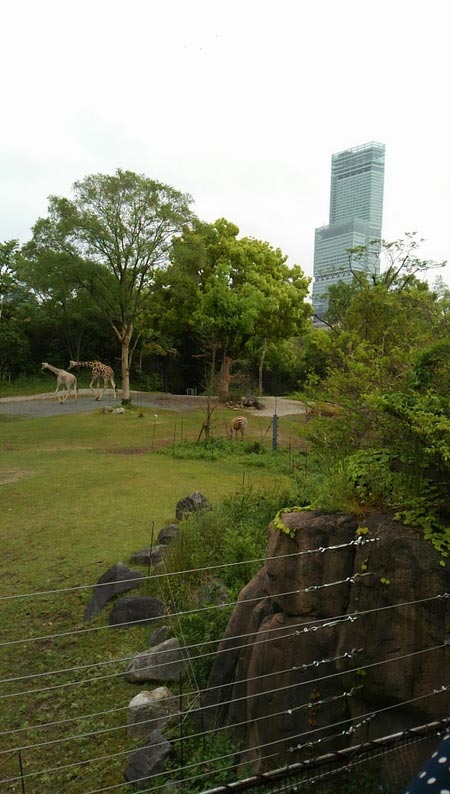 写真はキリンのバックにあべのハルカスと言う何とも不思議な