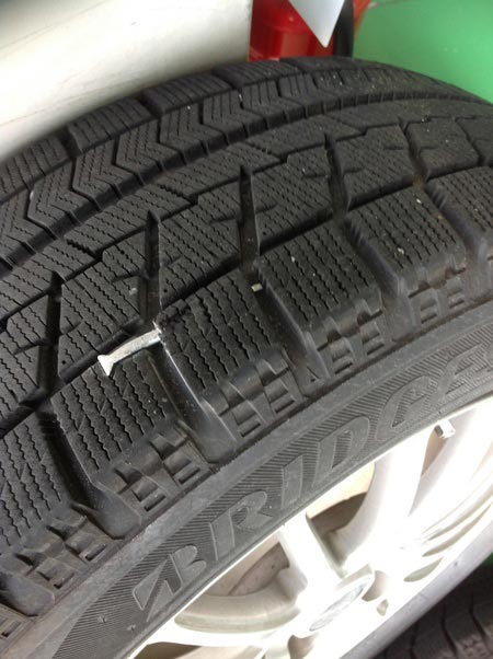 油断大敵o(TヘTo) ポスト 2015年5月20日 まだまだ冬タイヤからの履き替えが続いていますが、その冬タイヤ、大丈夫ですか??本日も冬タイヤからの履き替えを何台か行ったんですが、なんと長い釘を踏まれているじゃないですか(゚ロ゚;)これは気が付いてよかったです!お客様には、説明後に釘を抜かせてもらったんですが、空気漏れはしていなかったです!良かったです♪脱着の際もタイヤに何か踏まれてないか確認していますので、ご安心下さいね☆ 担当:鈴木