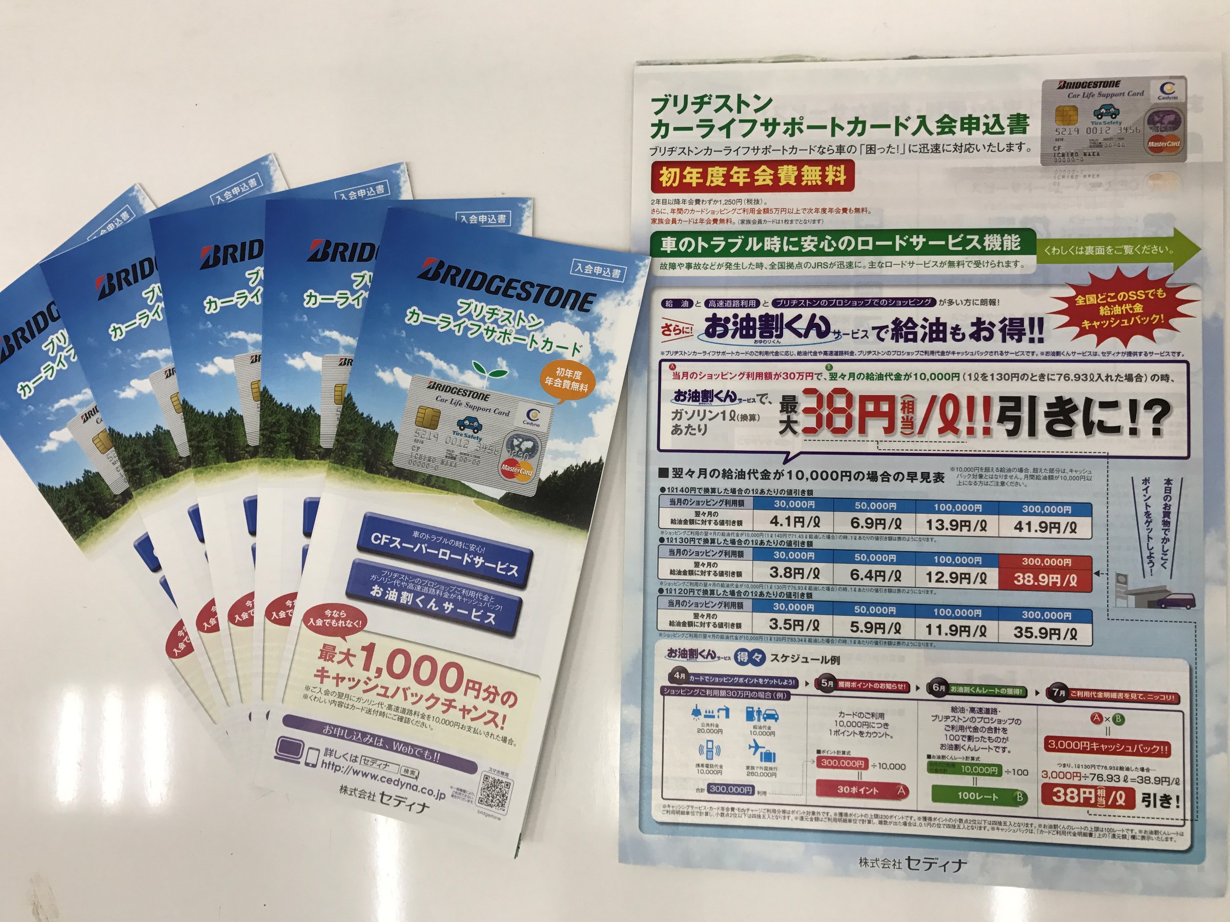 持っててより安心、お得な【ブリヂストンカーライフサポートカード】のご入会お待ちしております。