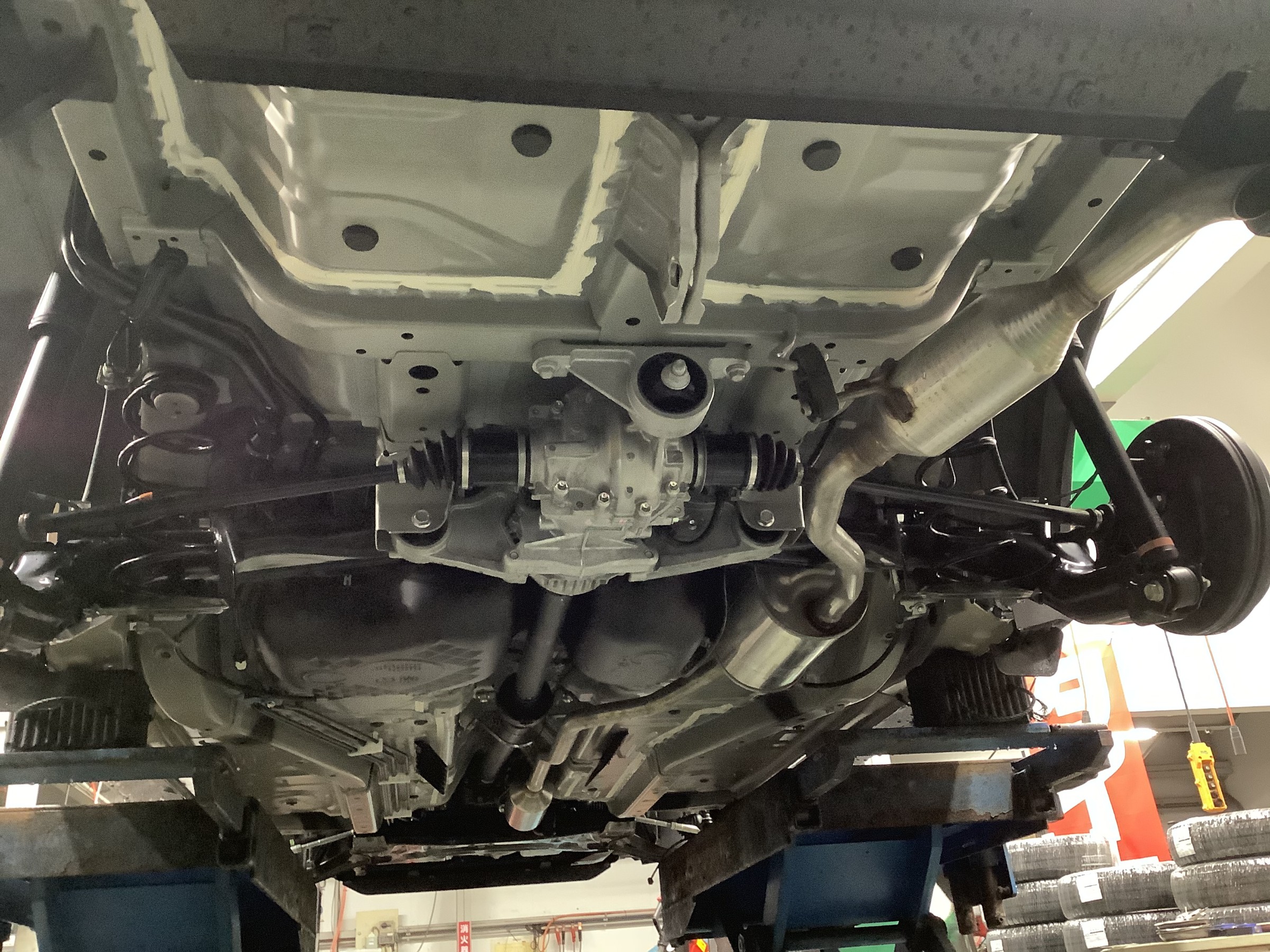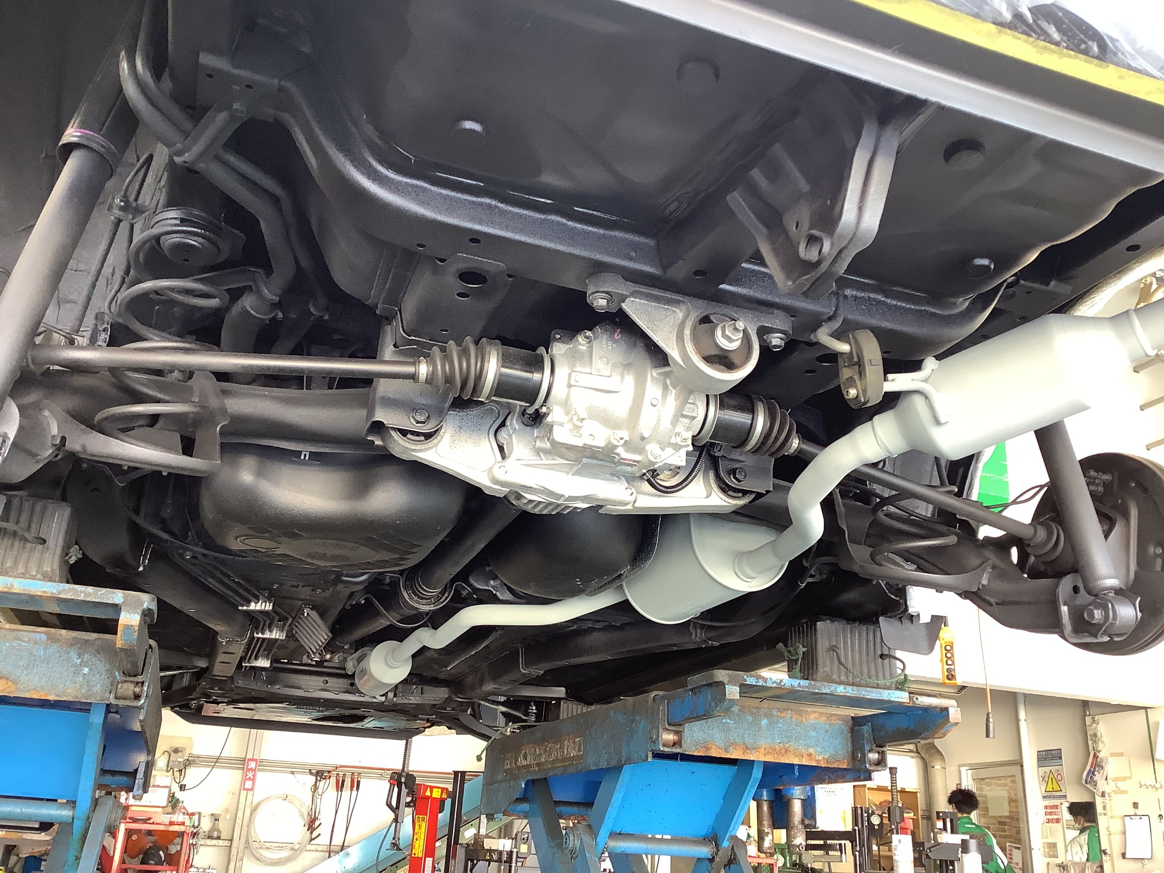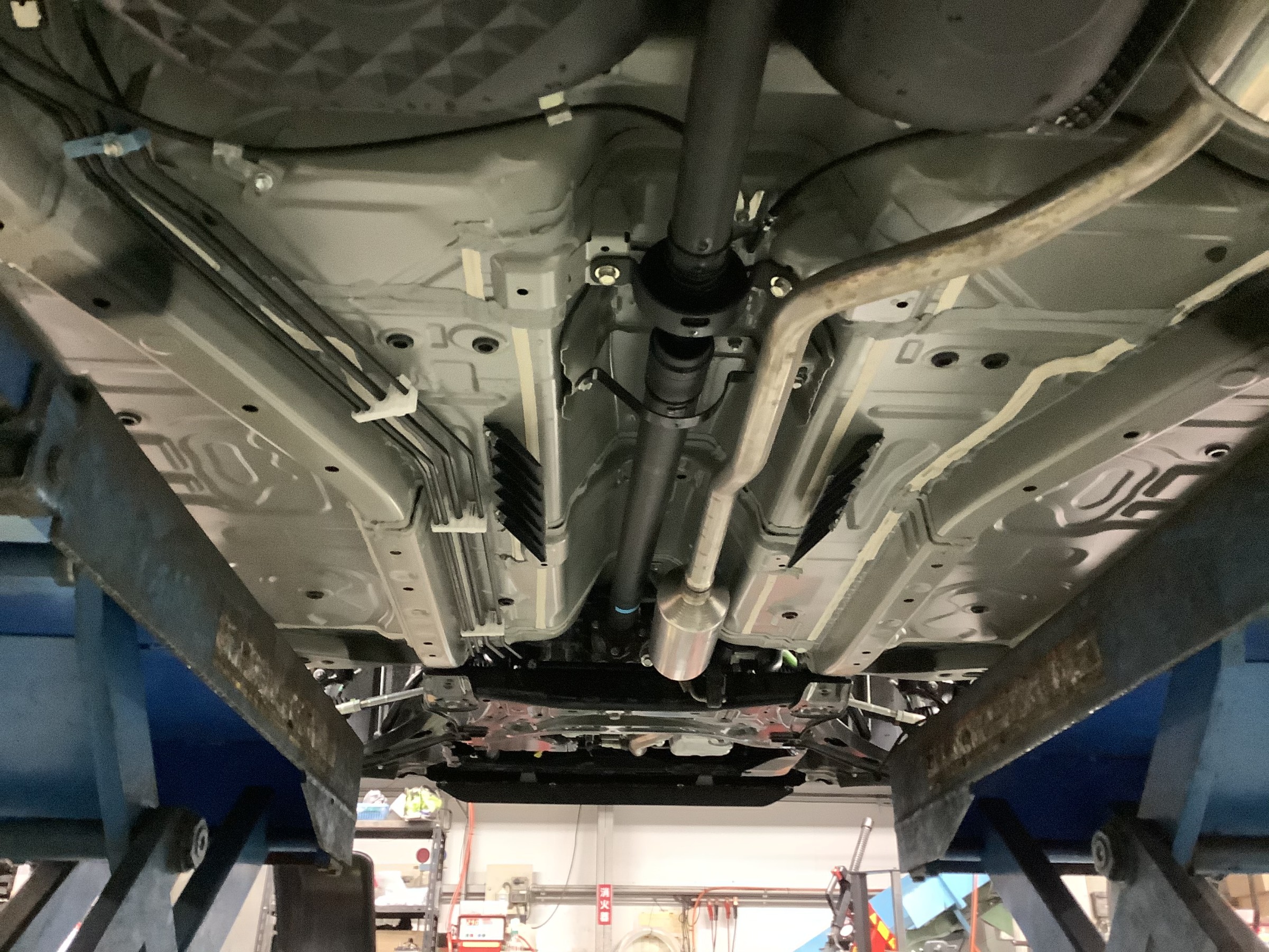 一度お車の下回りの状態を確認させていただいて、補修部分の確認をします。