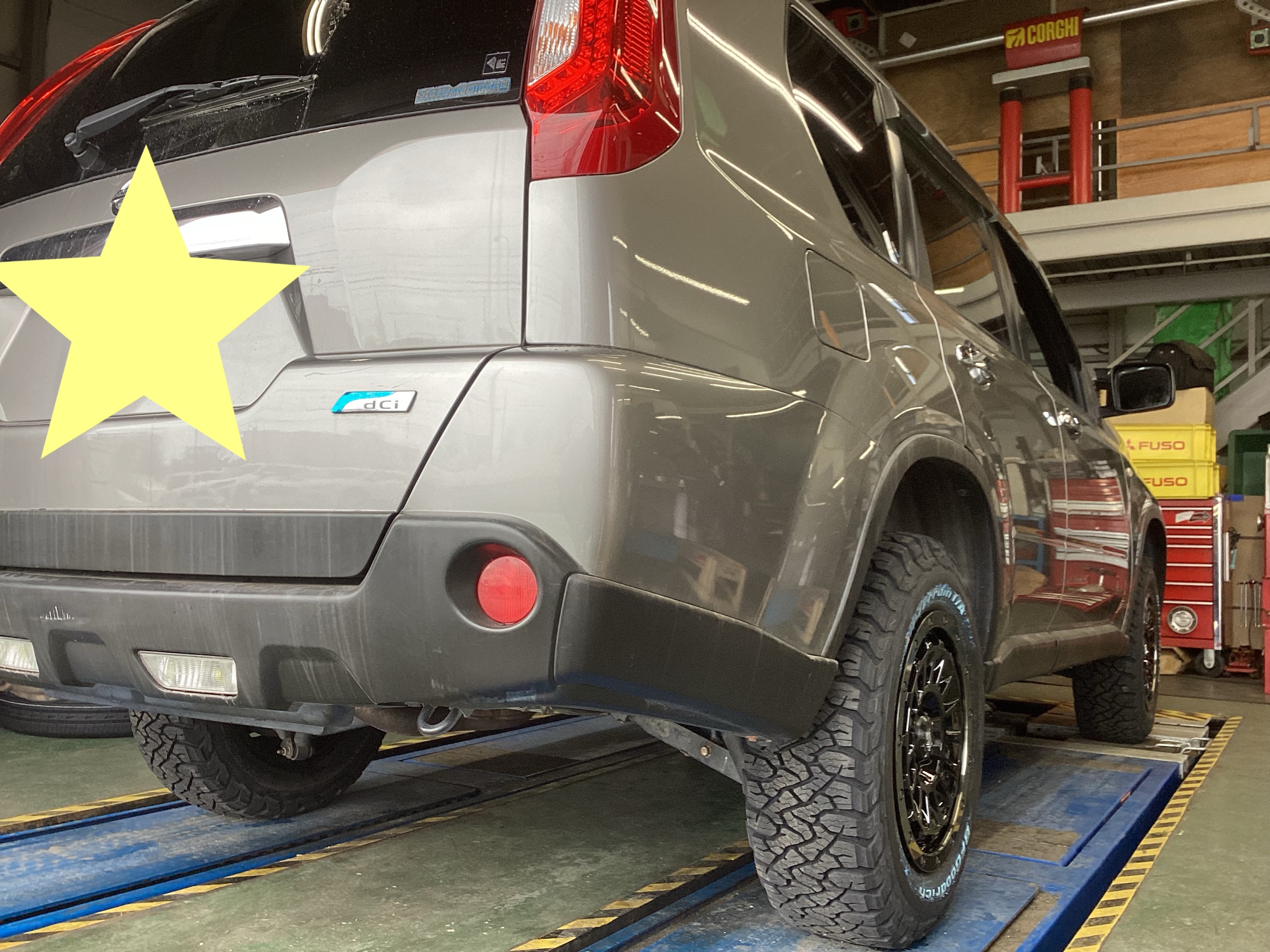 さて、今日はエクストレイルのホイール、リフトアップをしました!!