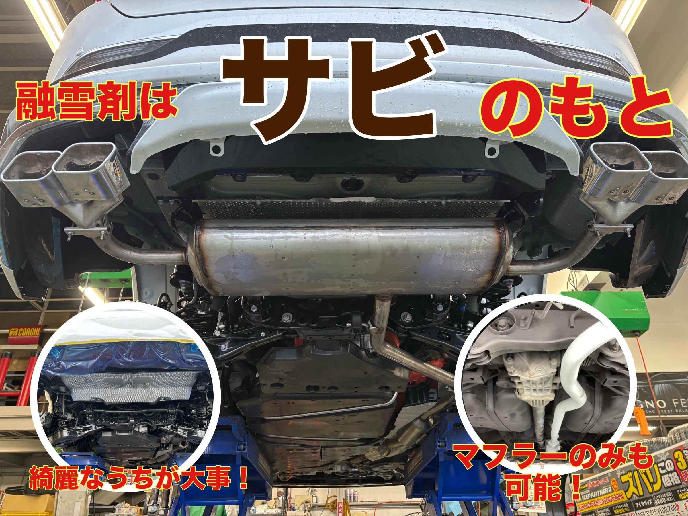 冬は路面に融雪剤が散布され、車の部品にダメージを与えます。