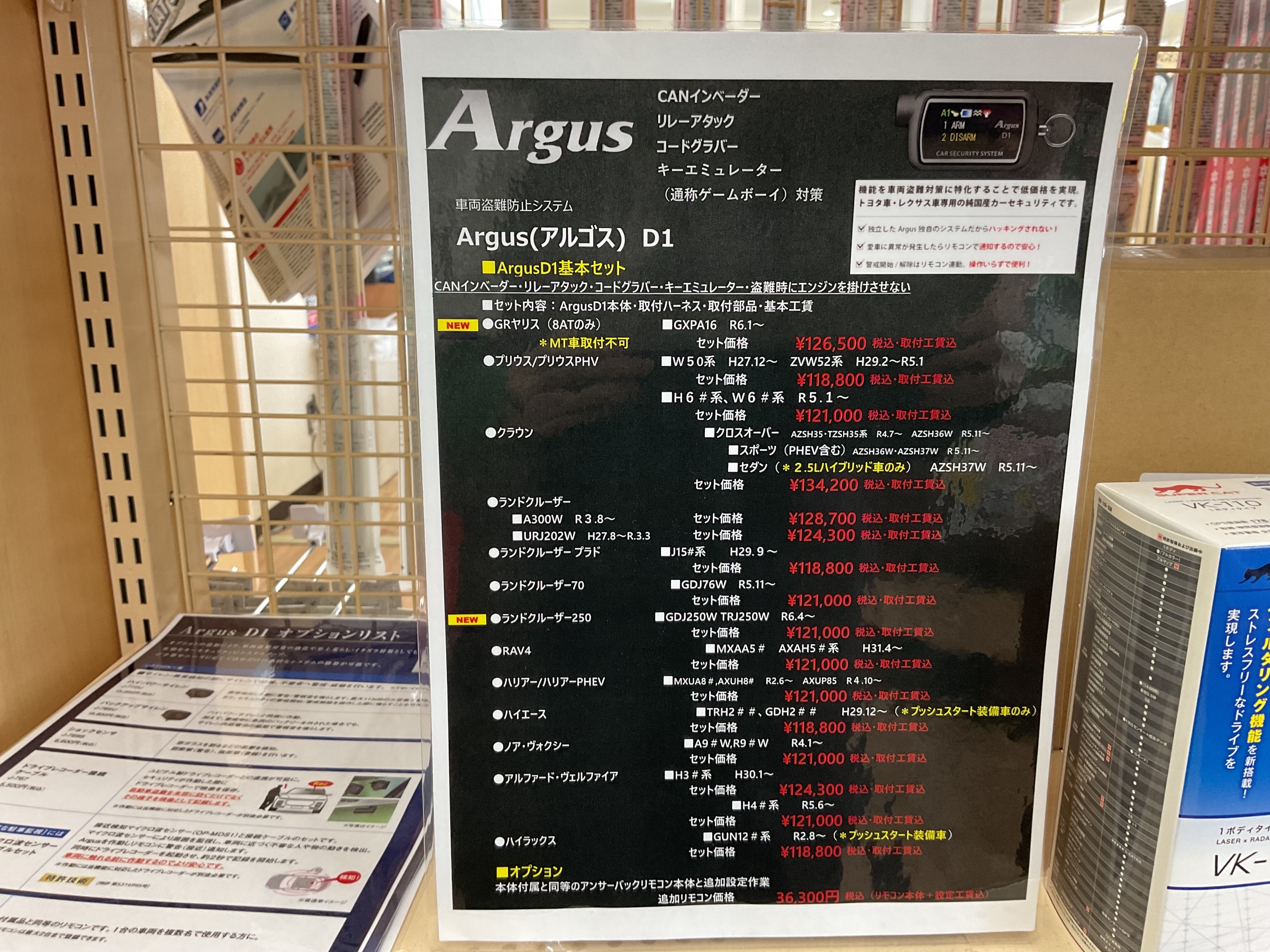 一部トヨタ車専用!盗難防止セキュリティー”Argus D1"!