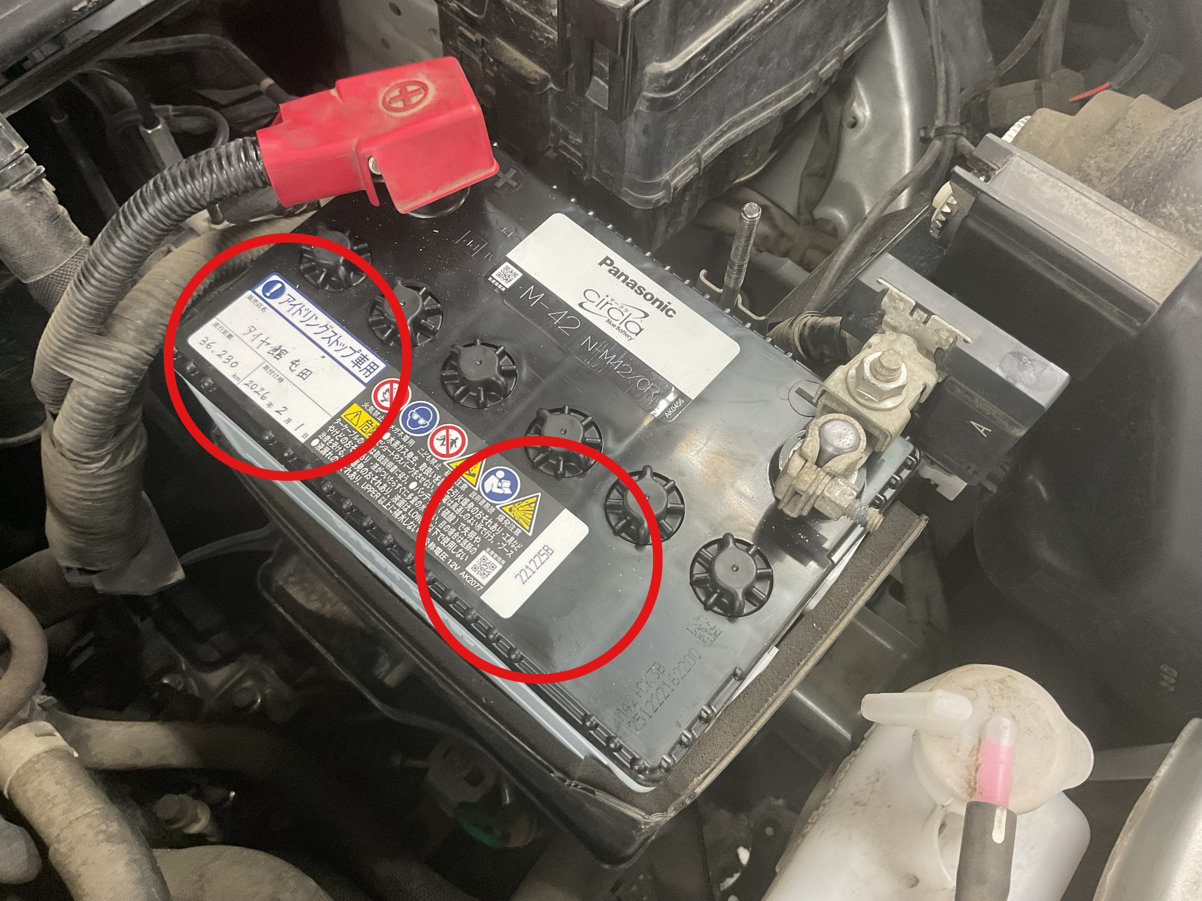 中には記入がなかったり、バッテリーの留め具となるステーで隠れてしまっている、