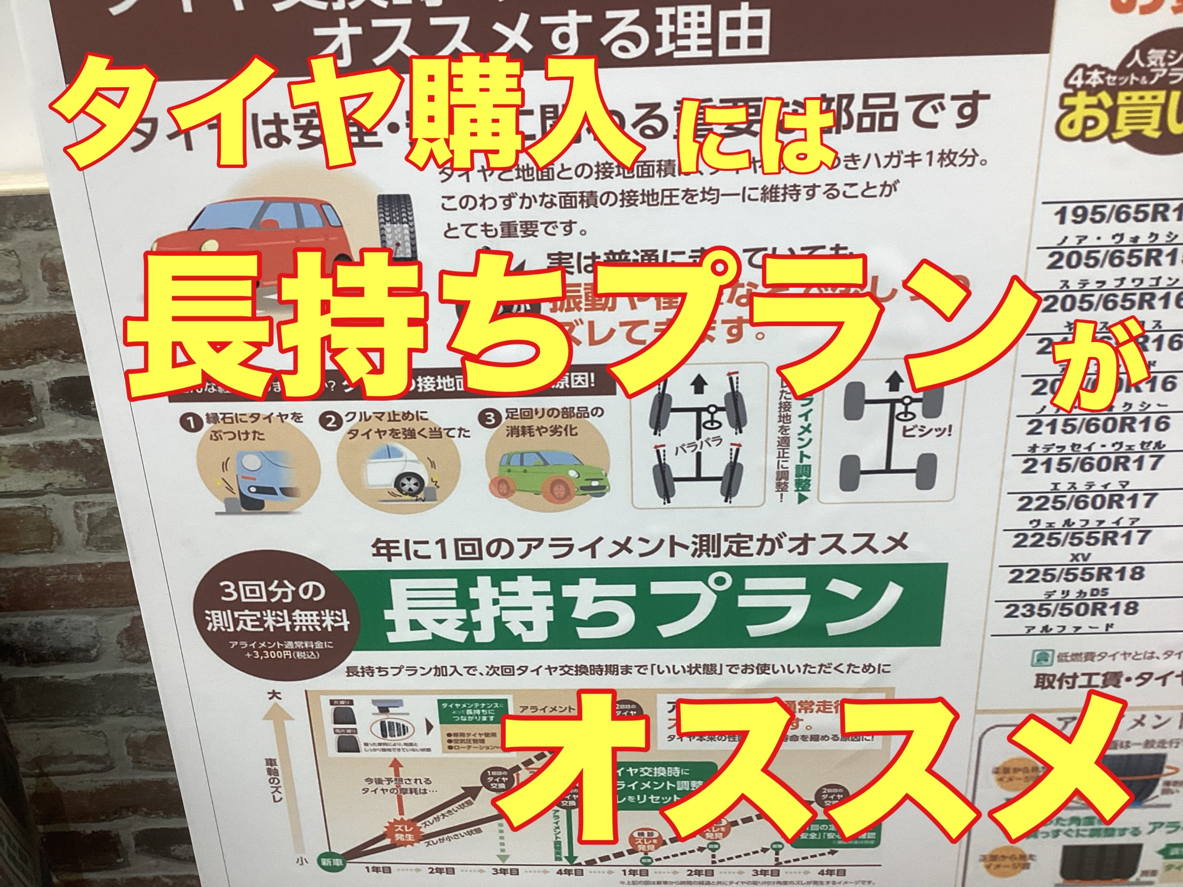 アライメント長持ちプランはいかがですか!?