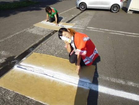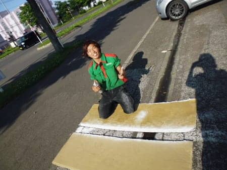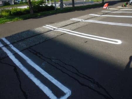 駐車場のライン引きをしている当店最年少コンビ!?(笑)