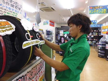 ピカピカ☆ ポスト 2016年7月10日 本日も雨の中、オイル交換やタイヤご購入などたくさんのご来店ありがとうございました!わたくし大澤も少しづつではありますが、オイル交換の受付業務に慣れてきました。横では優しい優しいカヤバ先生がいつも見守ってくれています!!そして店内では神保くんが一生懸命展示を直してくれています。キレイな店内は気持ちがいいですね☆明日もキレイなお店で皆様のご来店をお待ちしております(*^_^*) 担当:大澤