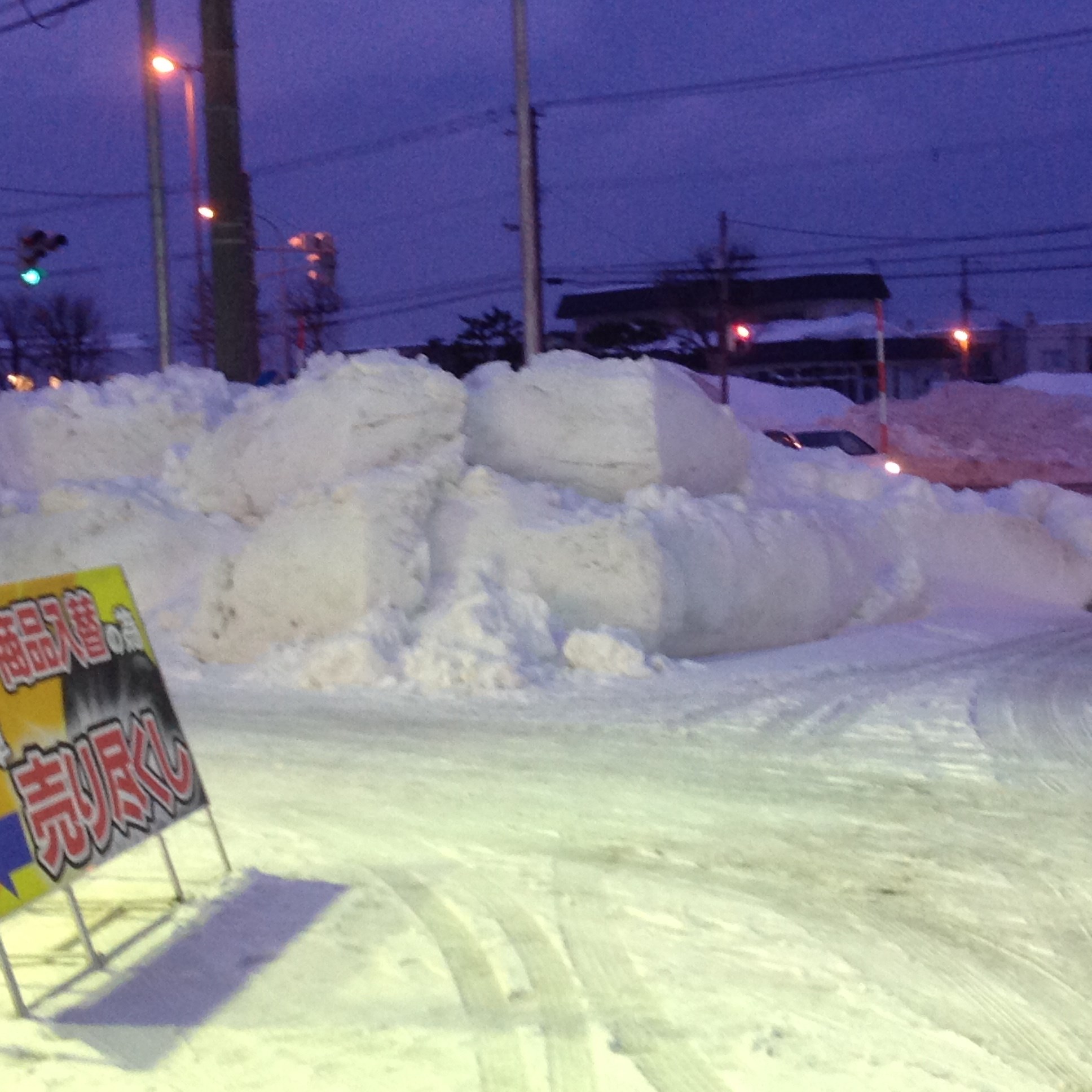歩道の雪山も高く、中道の幅もまたかなり狭くなってしまったので、