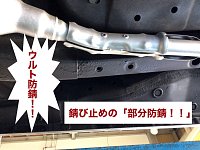 こんにちは!! 先日錆止めの「部分防錆」をしました!! もし下回りを擦って錆び止めが剥がれてしまったなどが あった際当店で取り扱っている「ウルト防錆」は、 一部の剥がれてしまった場所にも施工する事が可能です!! この画像の様にウルト防錆なら一部の補修が出来ます!! 厚い錆び止めとな...