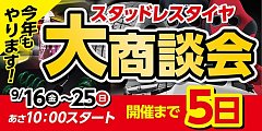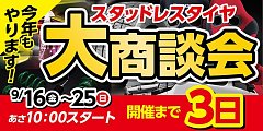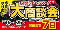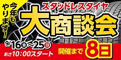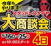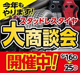 毎年好評のスタッドレス大商談会が今年も開催されます!!! 開催日程9/16~09/25の十日間です!!! スタッドレスをお得に準備できる特別期間です!!! ぜひタイヤ館屯田へお越しください!!(^^)/)