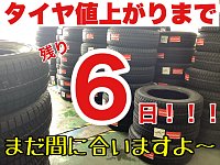 もう8月も残り6日となってしまいました! ということはタイヤ値上がりまであと6日ですということです、、! さらに31日は水曜日で定休日ですので 実質あと5日! まだまだ間に合いますので 夏タイヤ、冬タイヤともにご相談ください(^O^) 特に夏タイヤご検討中の方は 8月末までレグノキャンペーンも行...