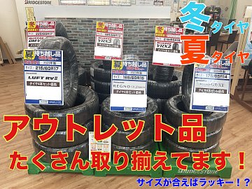 皆さんこんにちは!タイヤ館屯田です! 急に暖かい日がきた!と思ったのもつかの間… また雪景色に元通り。路面状況に気を付けながら運転してくださいね(>_<) 今日はタイヤのお得な情報のご案内です! その名も「アウトレット品」!! ただいま、2026年ですが、製造年数が2024年以前のタイヤが お求...