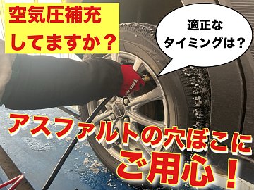 こんにちは!タイヤ館屯田です!! 朝はホワイトアウトで大変でしたね……。 風も強いので防寒対策はばっちりしてくださいね! 今日は雪解けが進むと増えてくるあのホットな事例のご紹介です。 皆様、お車の空気圧補充はどれくらいのタイミングでしていますでしょうか?? 適正なタイミングとしては1...