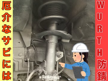 こんにちは!タイヤ館屯田です(^^♪ 雪もだんだん解け始め、路面にアスファルトが出てくる時期になりました! しかし狭い道や住宅街の道はガタガタで、大きい水たまりなど路面状況は最悪です(´;ω;`) 気を付けて運転していきましょう... さて、今日は錆止めについてのお話です!! WURTH(ウルト)防...