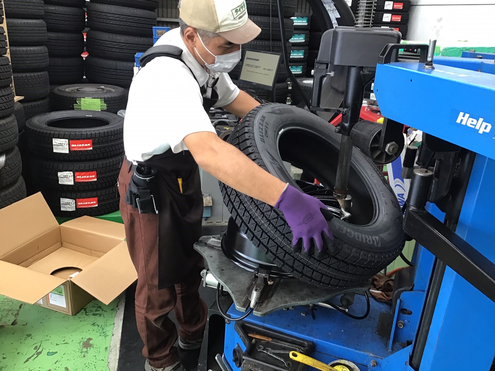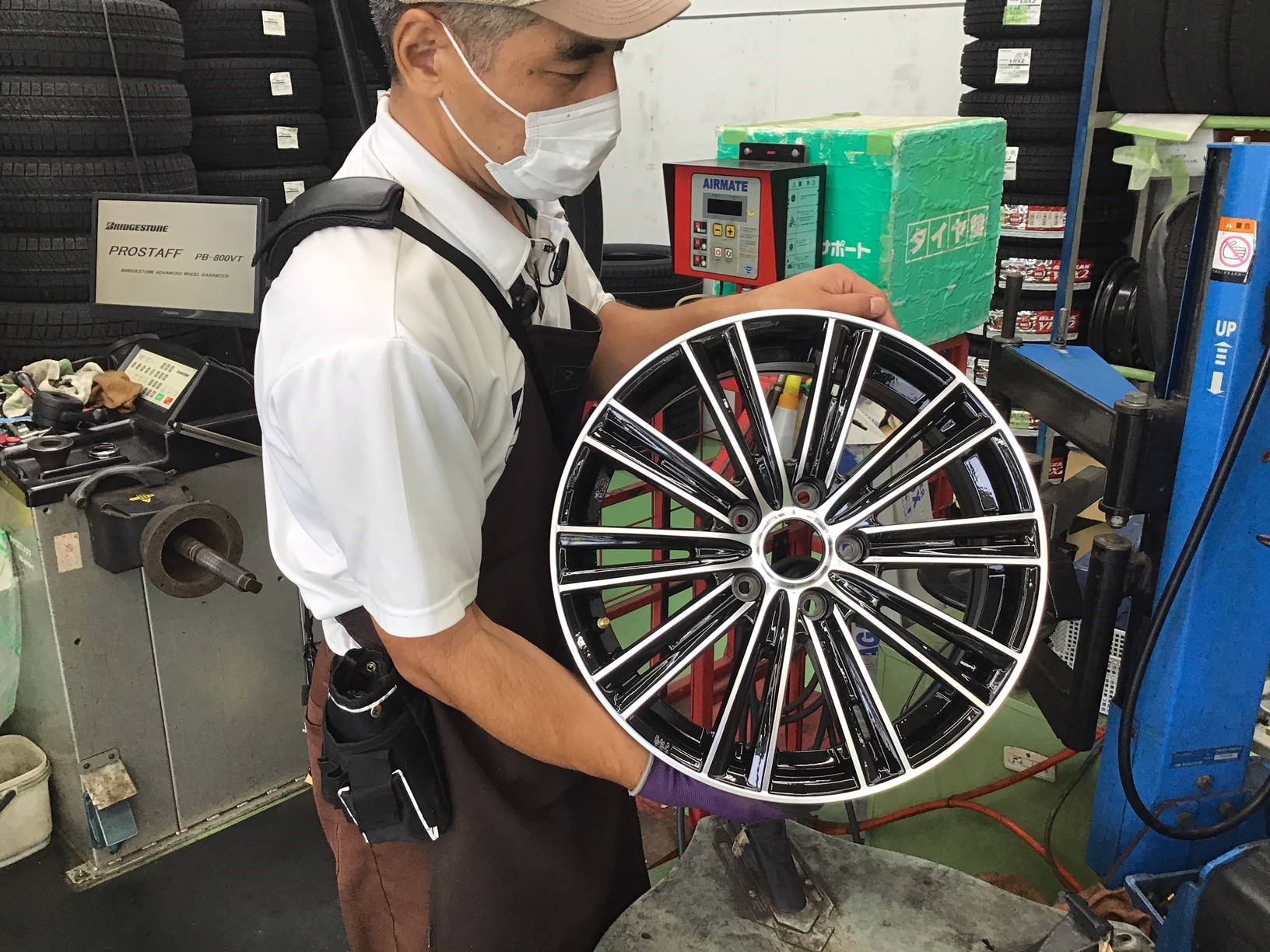 伊崎スタッフがタイヤの組み込み中!