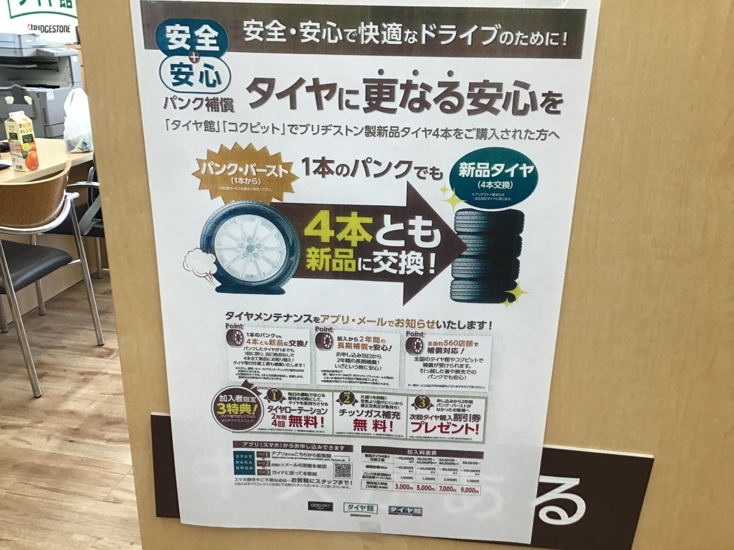 全国のタイヤ館タイヤ館で補償が受けられるので