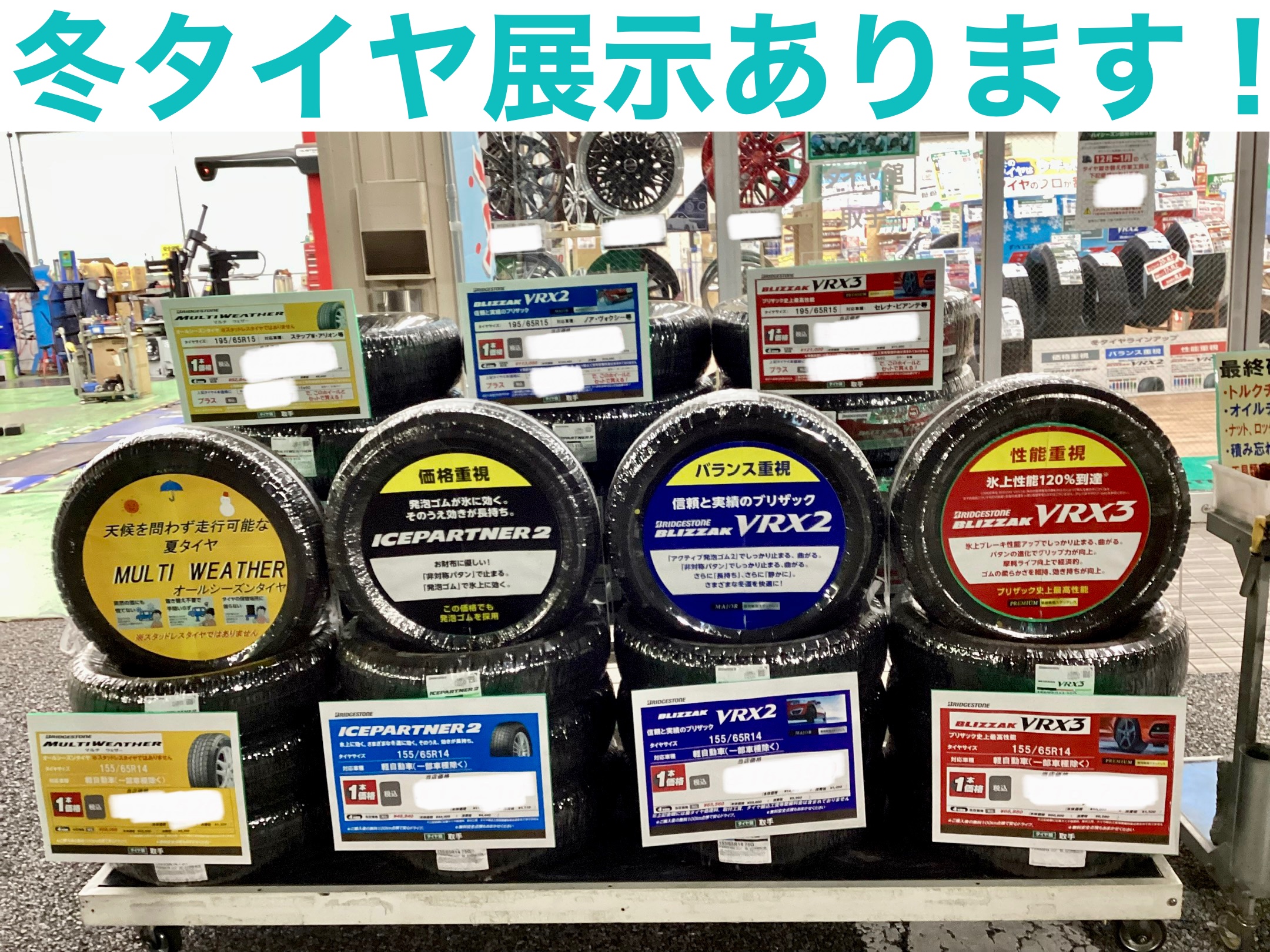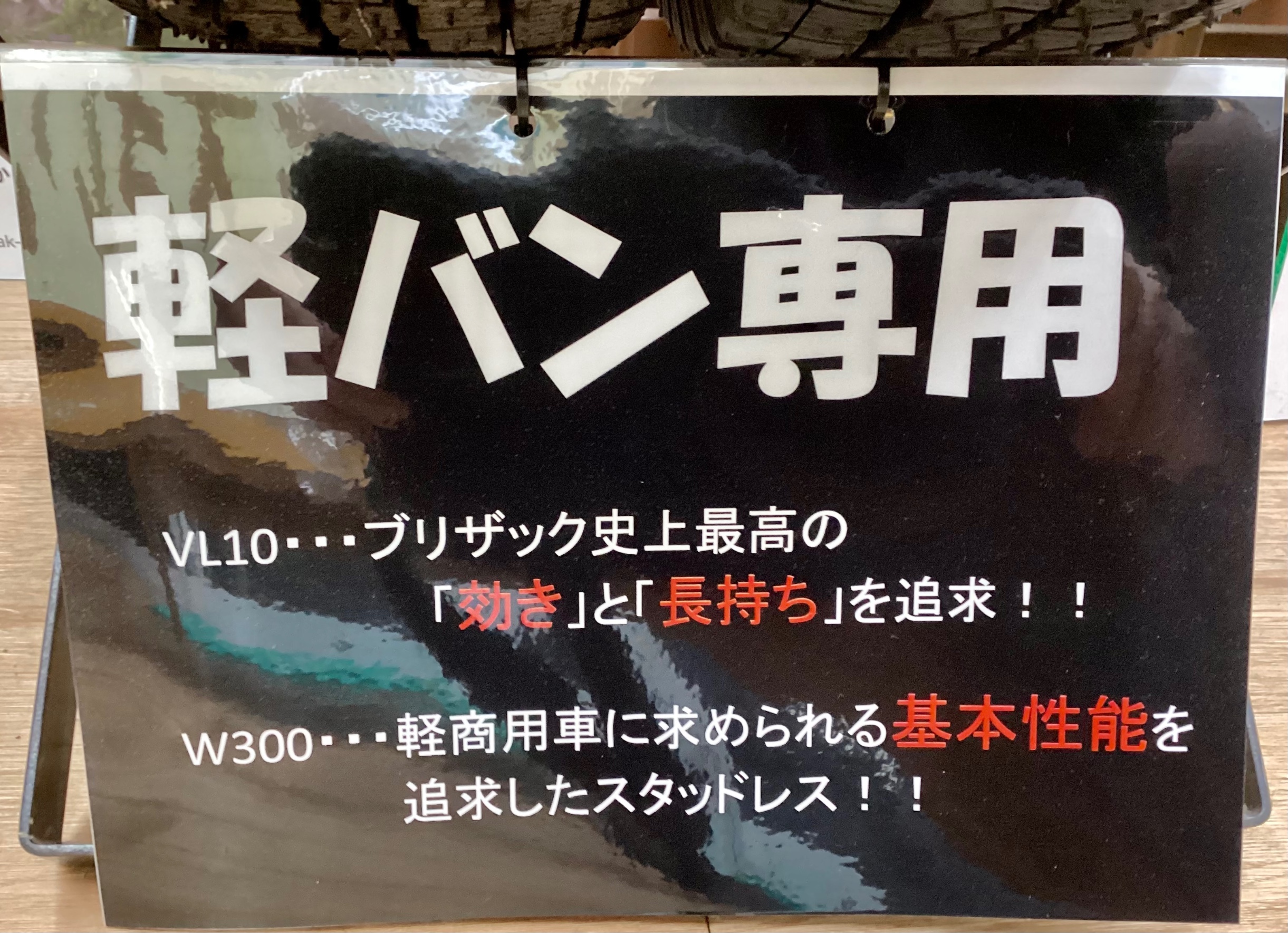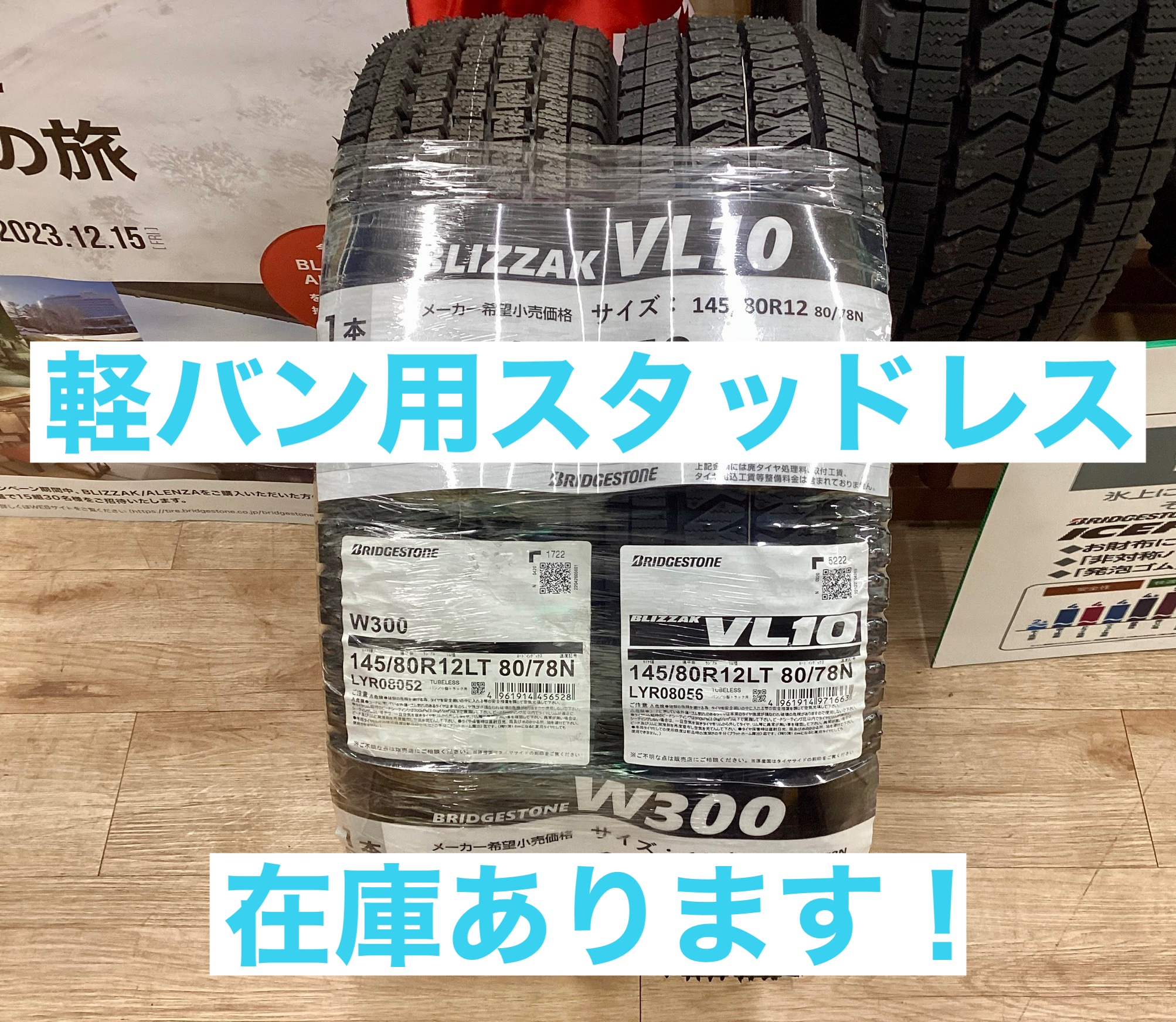 店内入口には軽バン専用スタッドレスタイヤも展示しております。