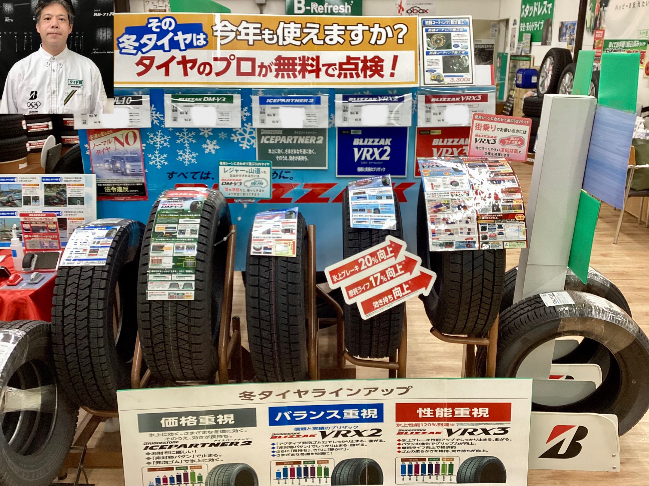 ご自宅で保管されているスタッドレスタイヤが今年も使えるかわからない場合はお持ちいただければ店長の佐野が無料で点検いたします!