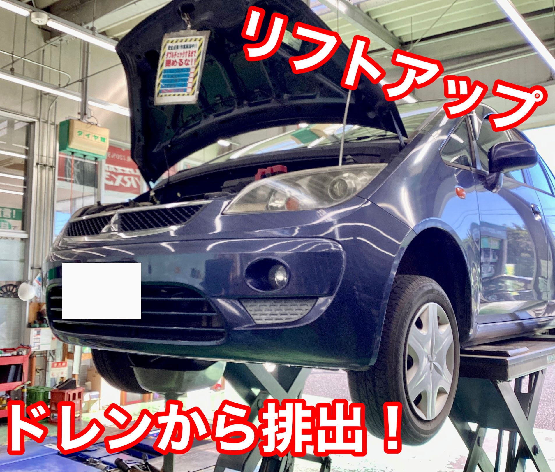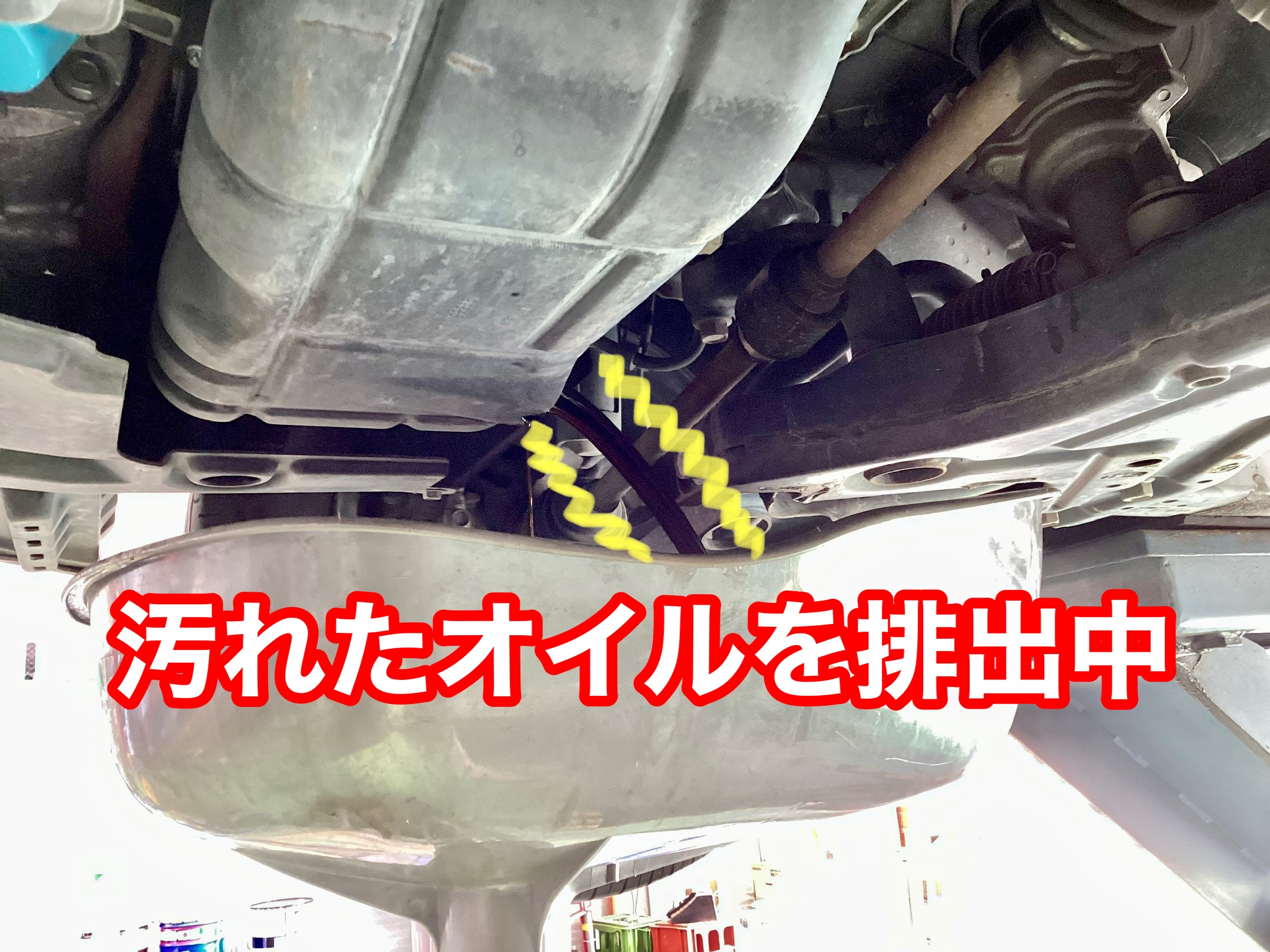 リフトアップしてドレンボルトを外して古いオイルを排出していきます。