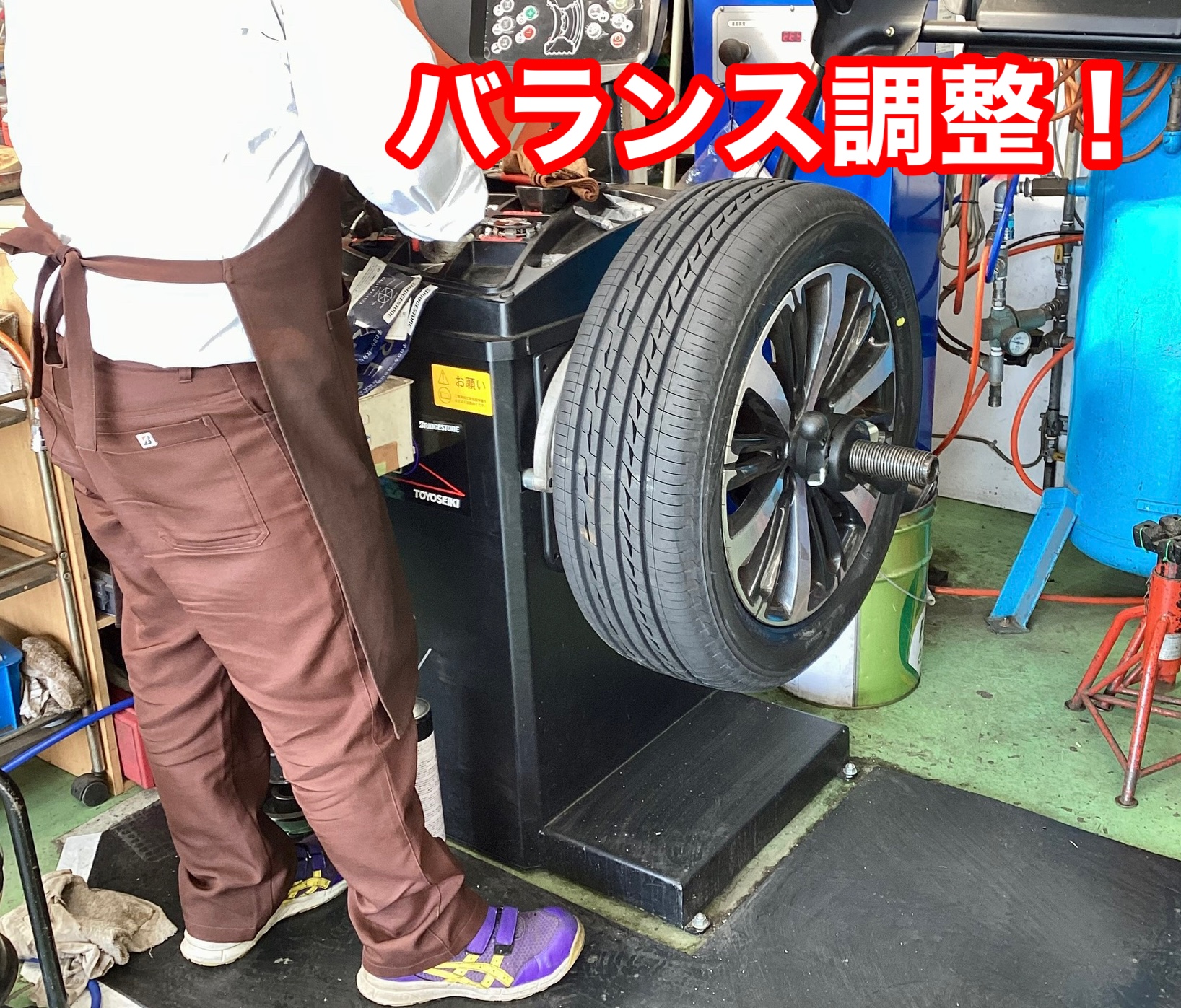 タイヤを組み替えたらバランスがズレるのでしっかりと調整します。