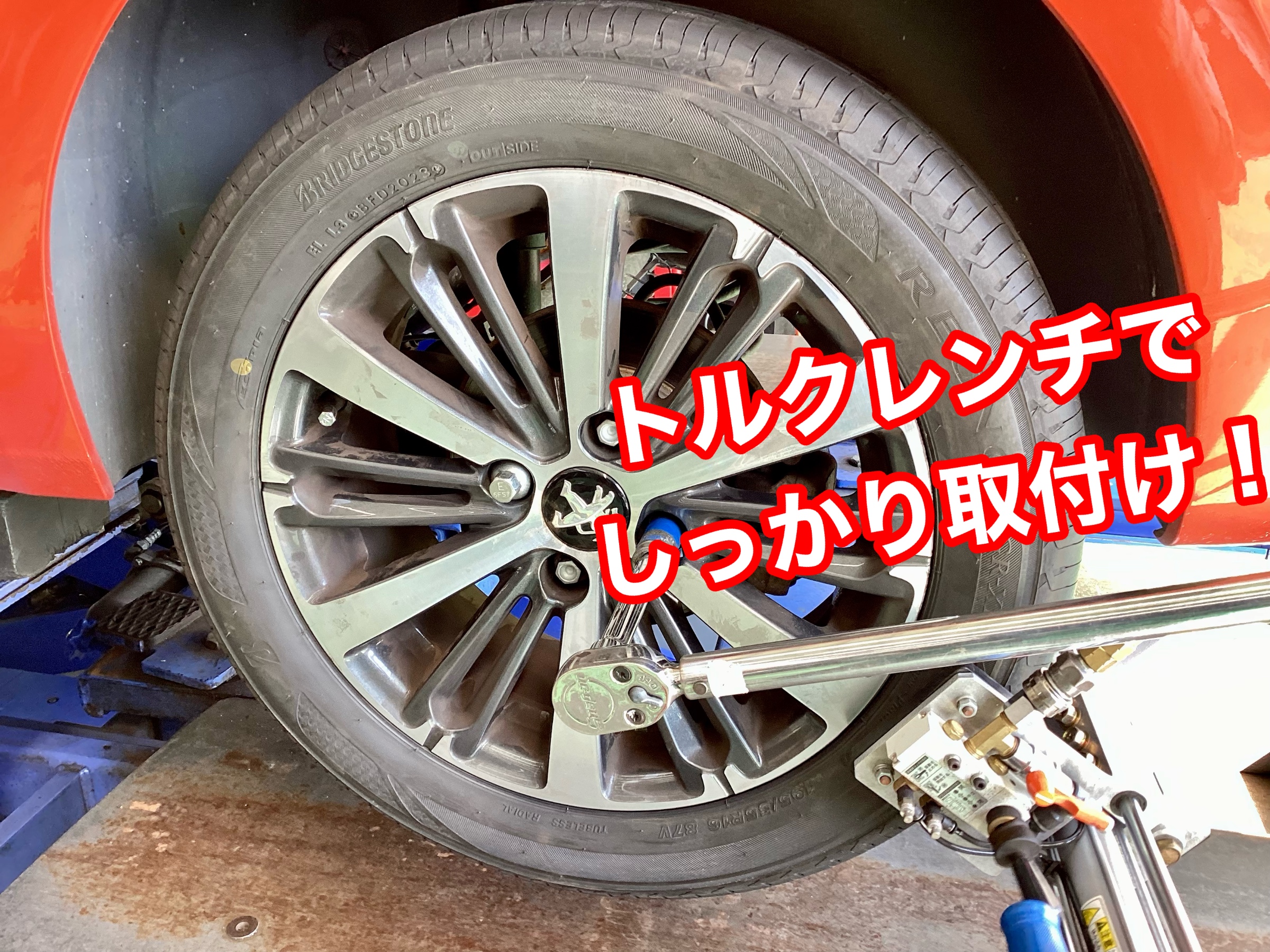当店ではトルクレンチを使いホイールナット(ボルト)は規定トルクで締め付けをさせていただいております。