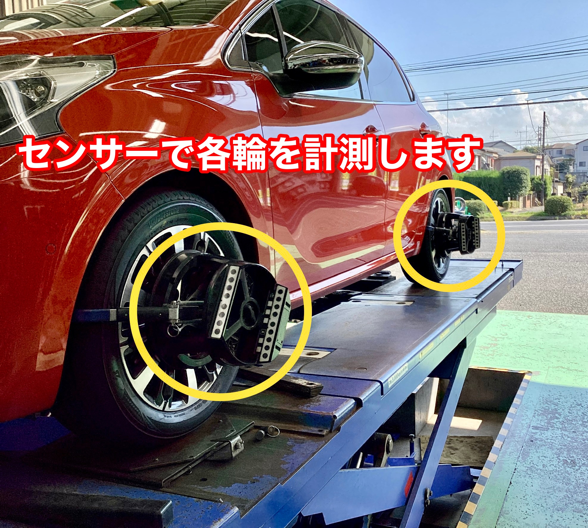 こちらの車両はハンドルを真ん中にした際に車が左に向かうようなアライメントでした。