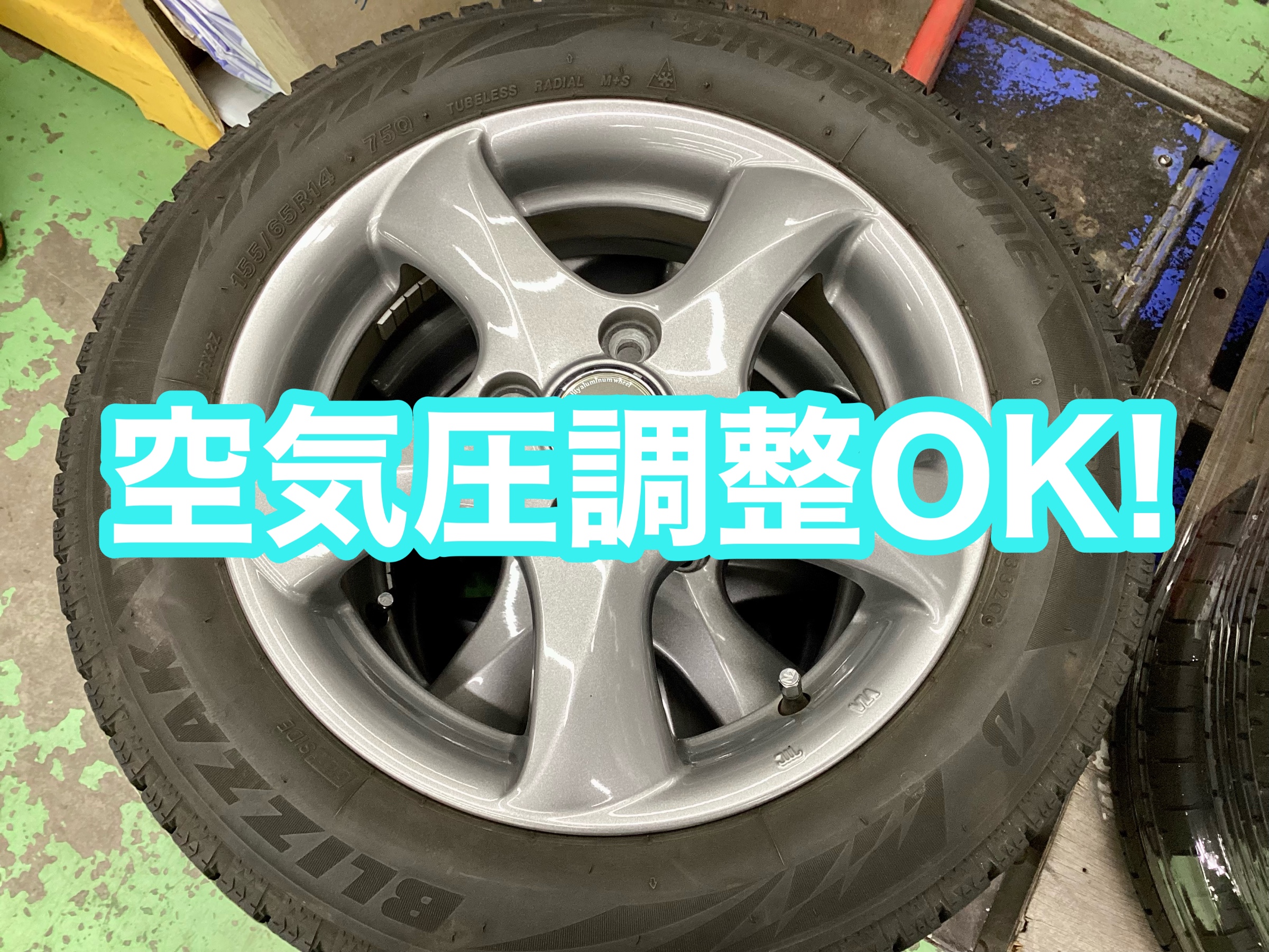 タイヤを取付ける前に空気圧はお車ごとの適正値に調整させていただいております。