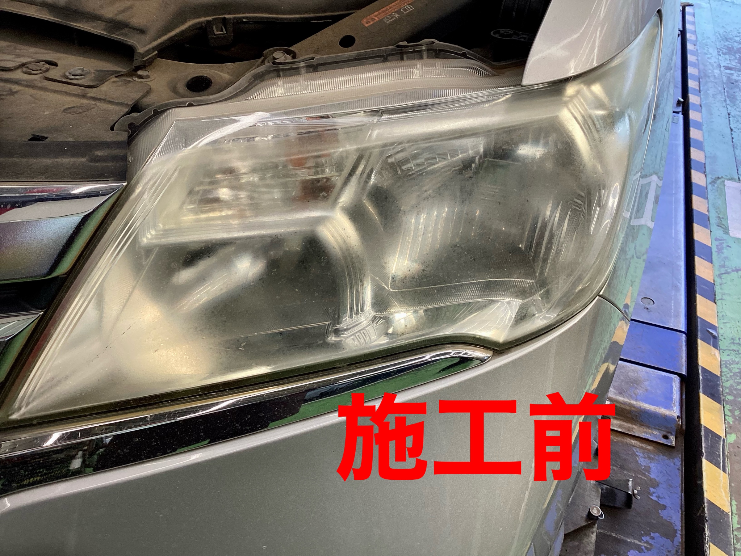 レンズ内側の汚れや曇り、キズは消せないのであくまでも外側のみの曇りを取る施工となります。