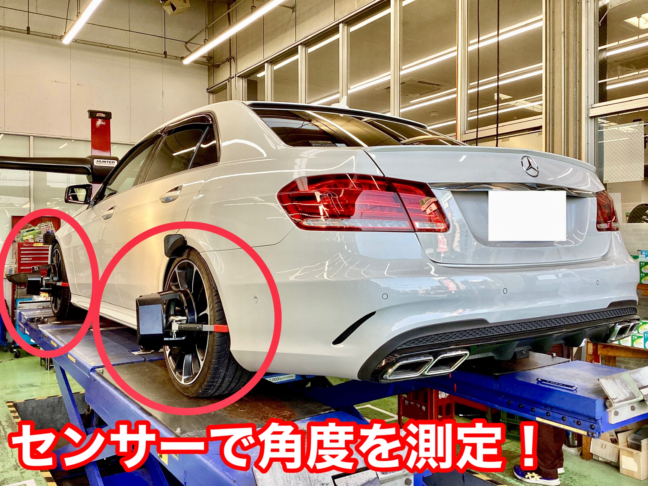 本日はメルセデスベンツのアライメント調整を作業させていただきました。