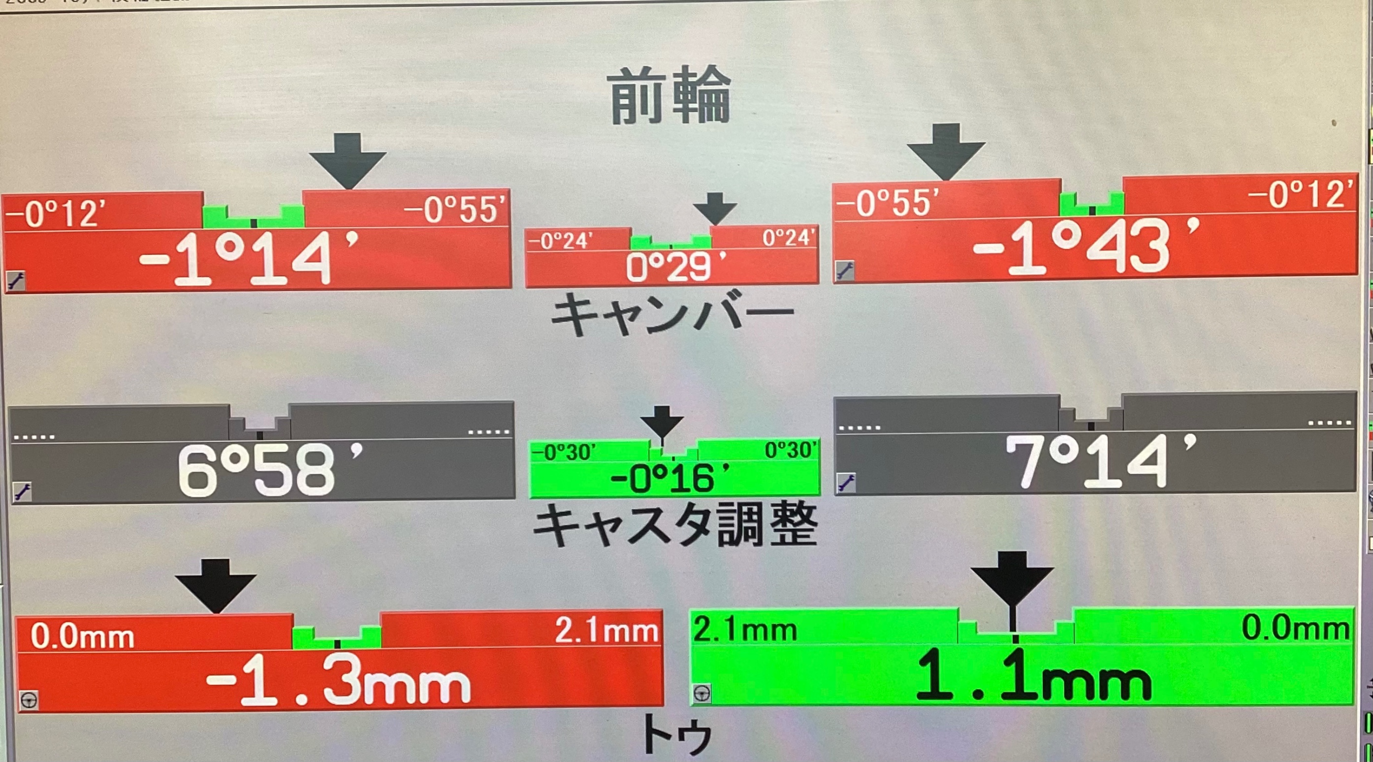 今回は前輪の交換をアームを交換されたとの事で前輪の数値が大きくズレていました。