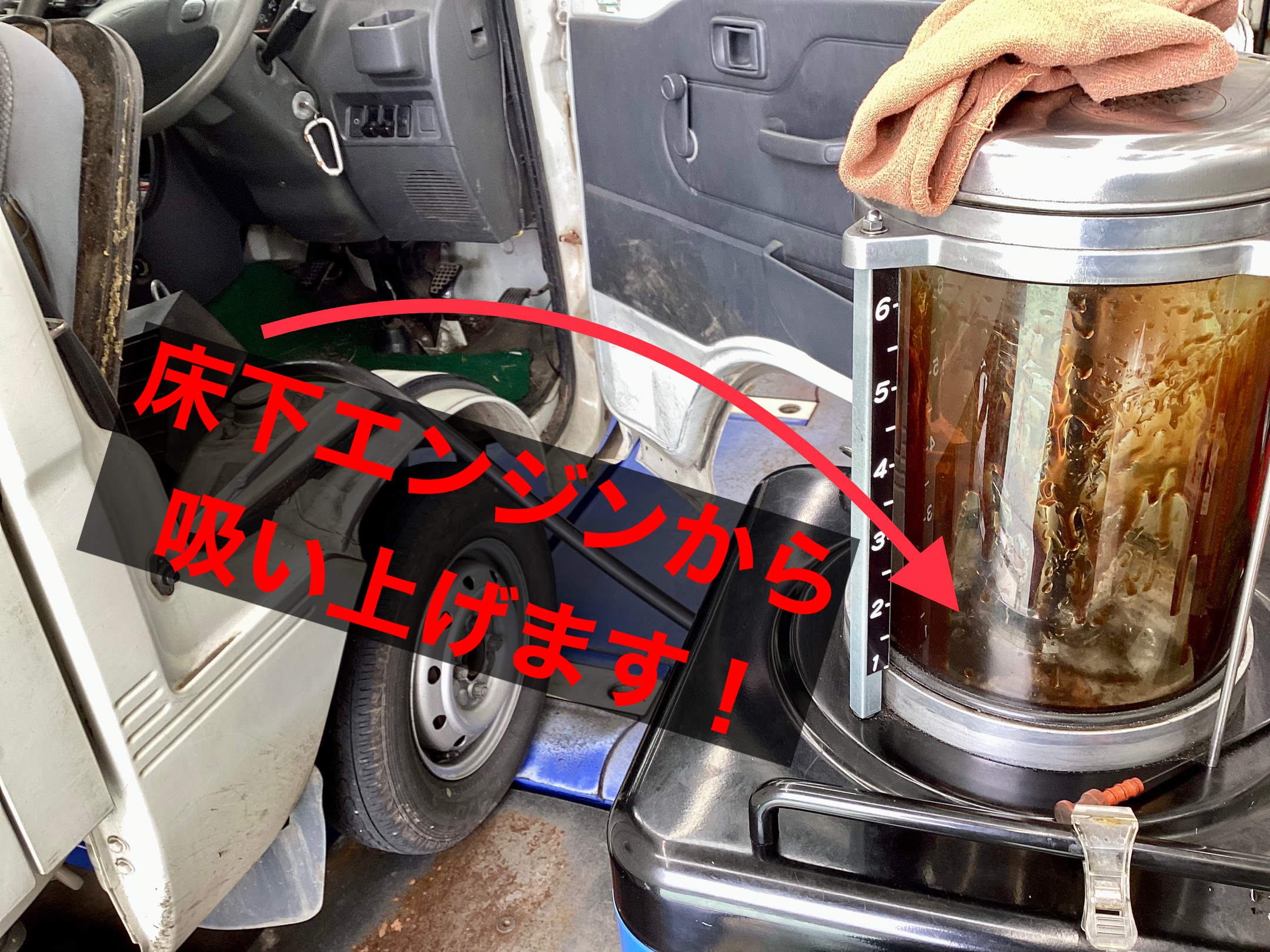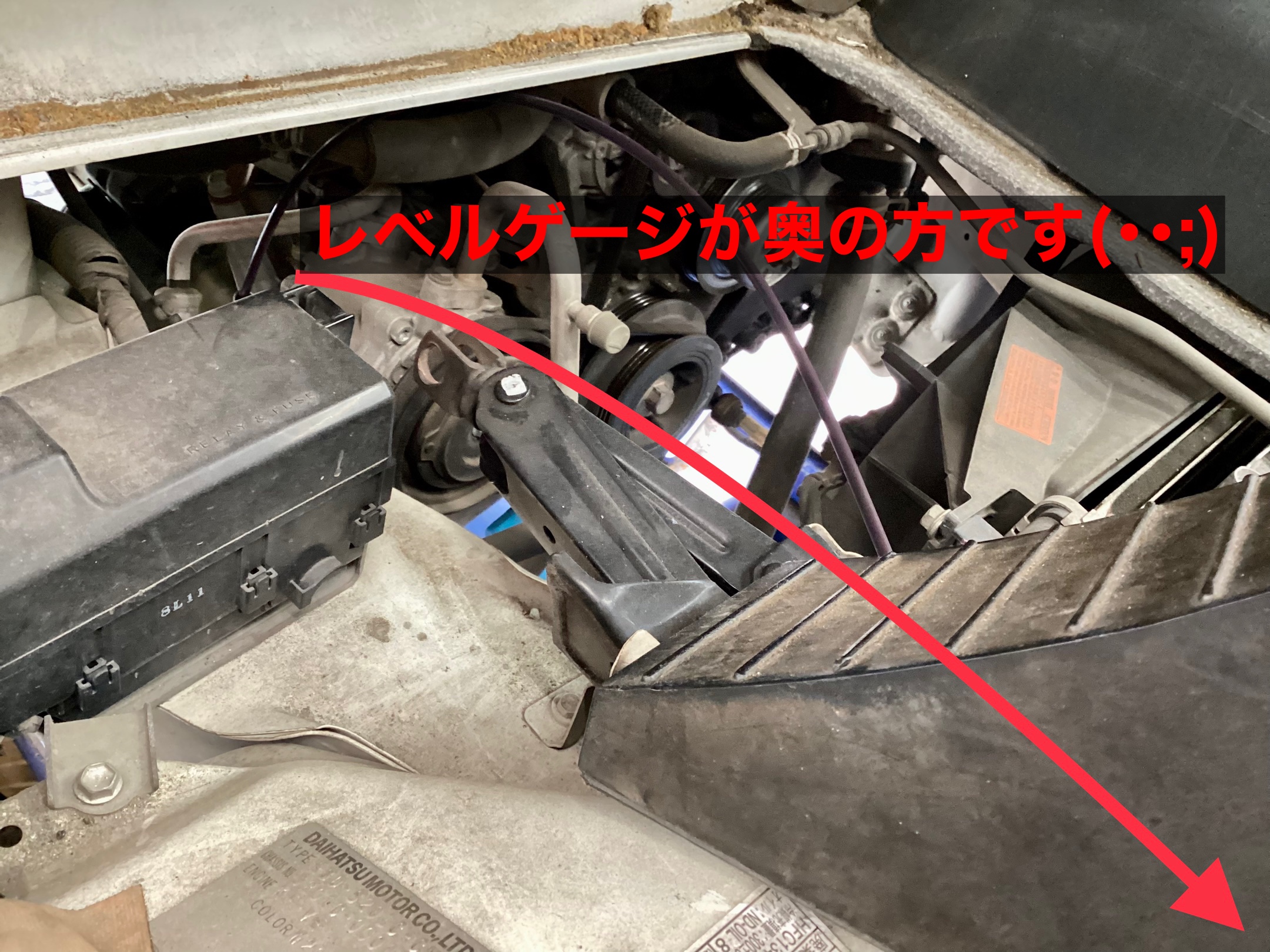こちらのハイゼットはレベルゲージが運転席側にあるのですが