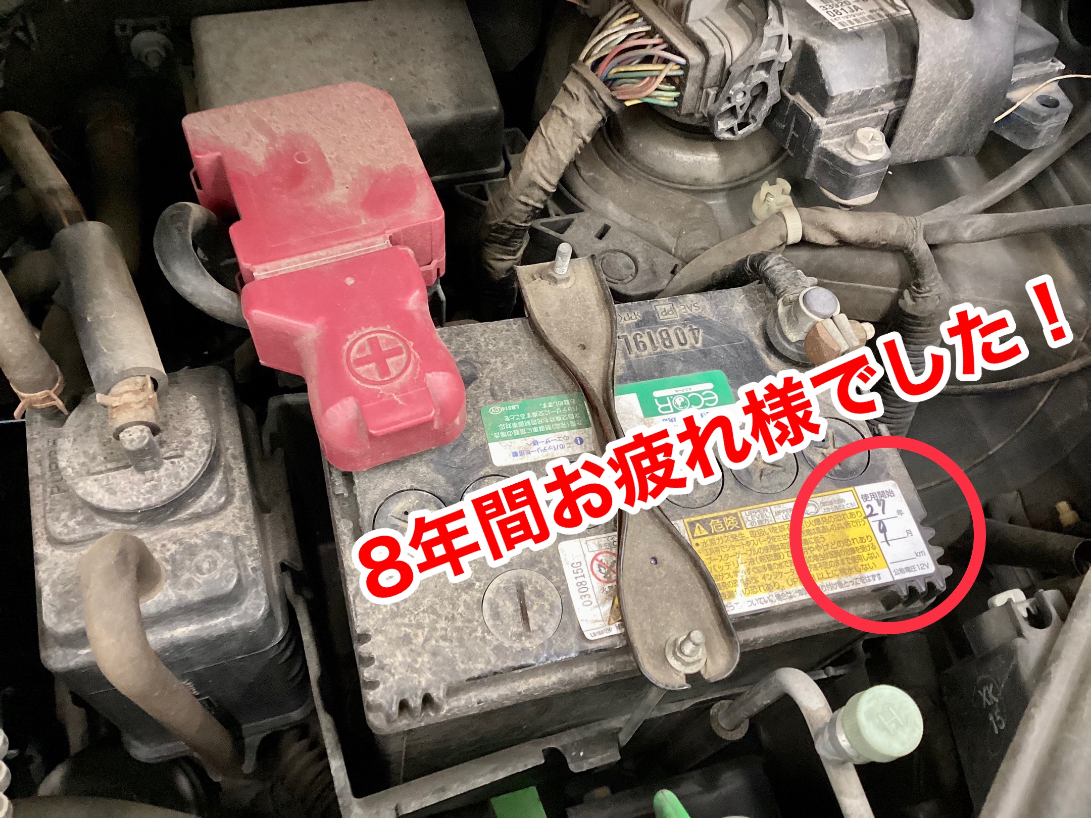 8年間頑張ったバッテリーは当店で丁重に処分させていただきます。