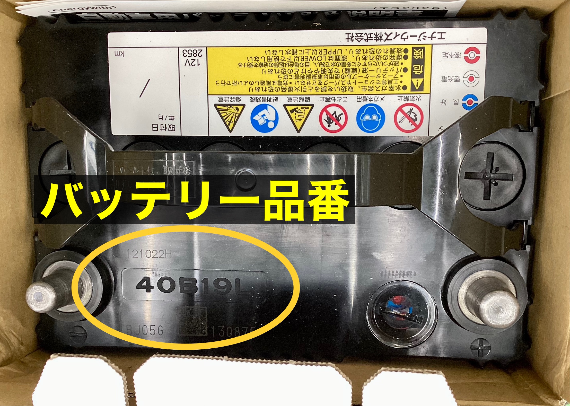 バッテリー品番は大体どのバッテリーもここらへんに書いてあります。