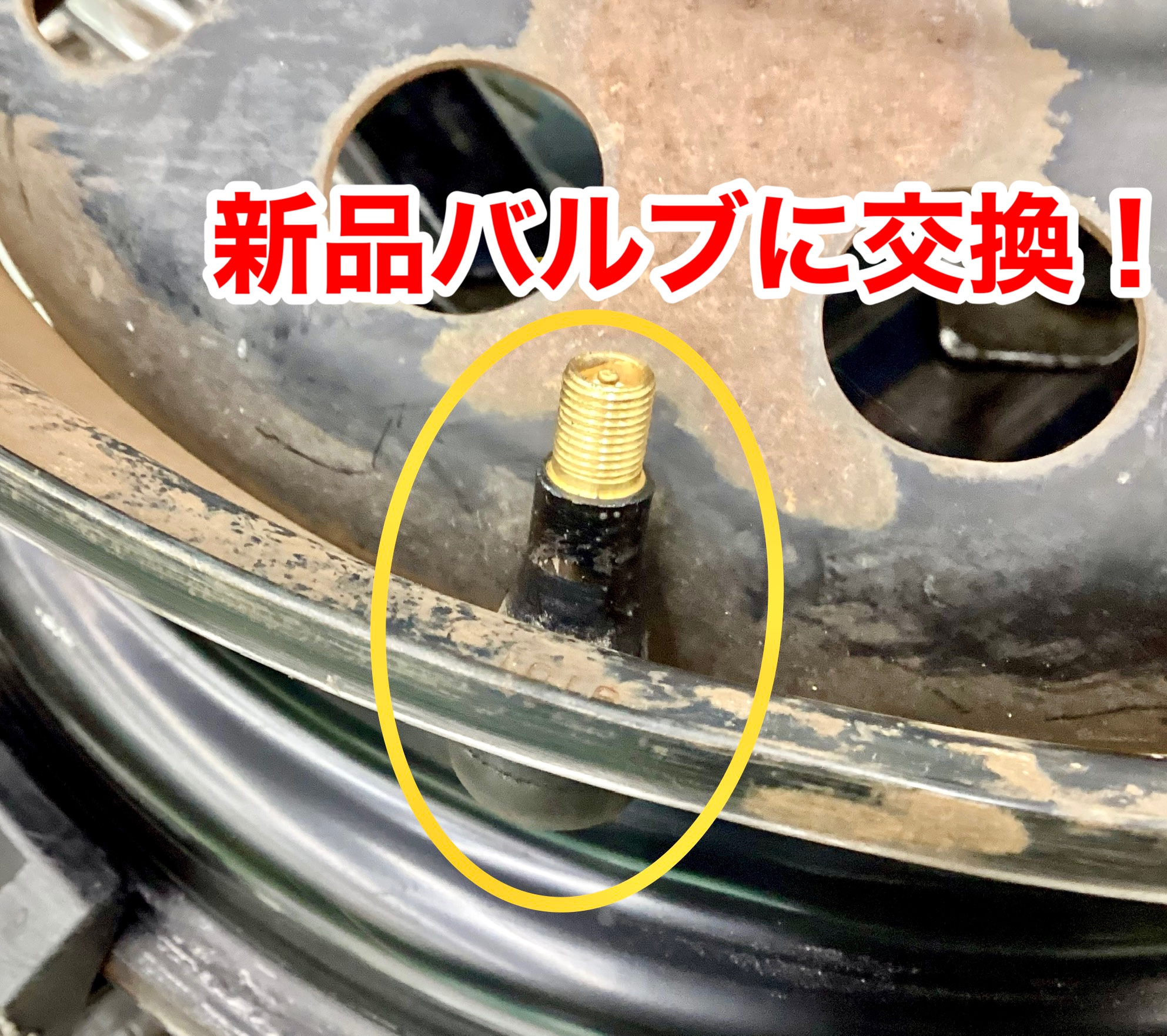 当店ではゴム製のエアバルブについては新品に交換させていただいております。