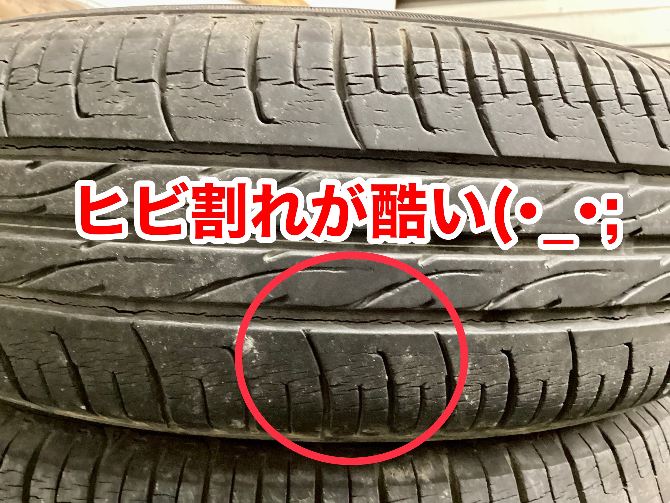 交換前のタイヤはヒビ割れが酷かったです。