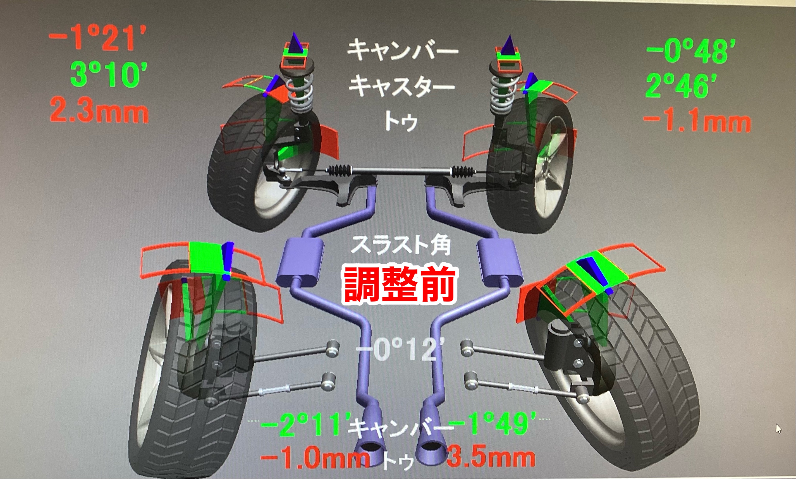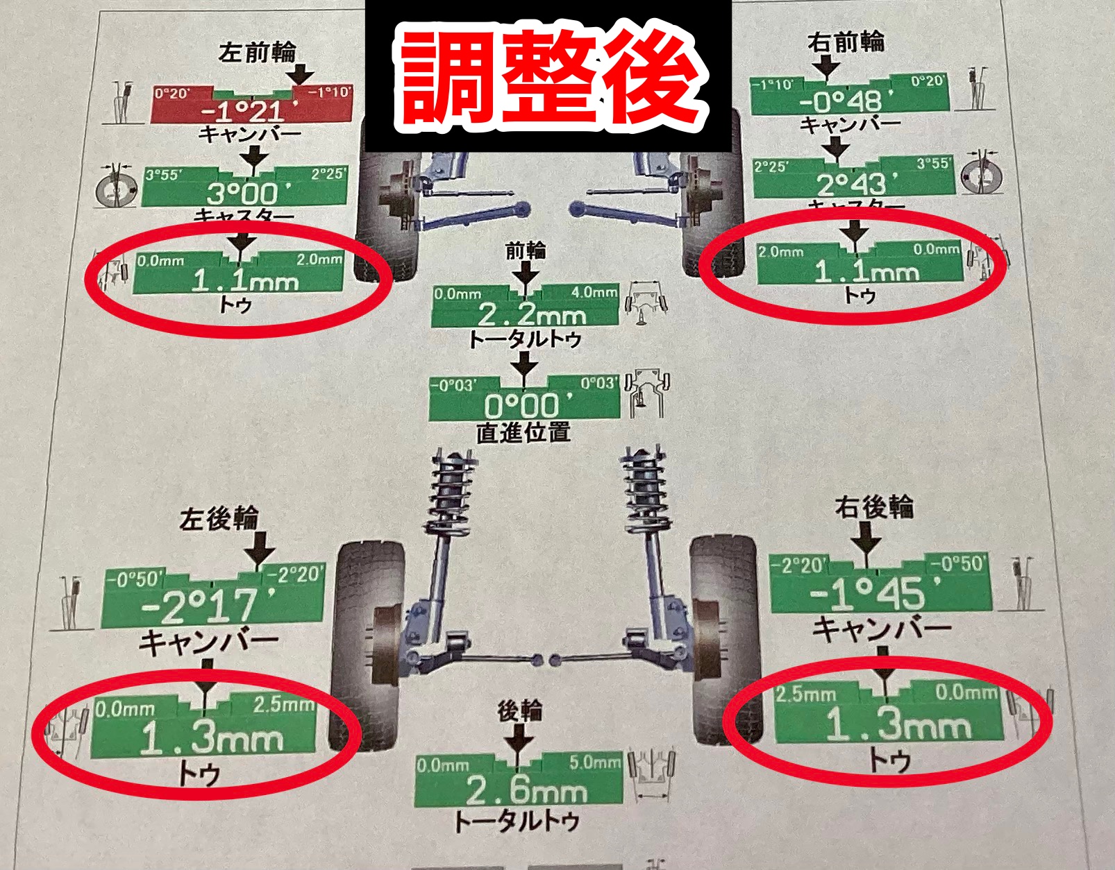 トー4か所全て基準値に調整させていただきました。