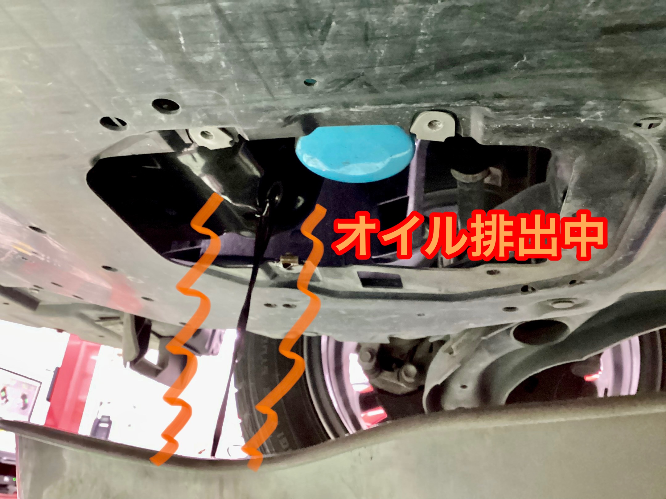 エンジン下にはアンダーカバーが付いておりますが、オイル交換用にフタが付いています。